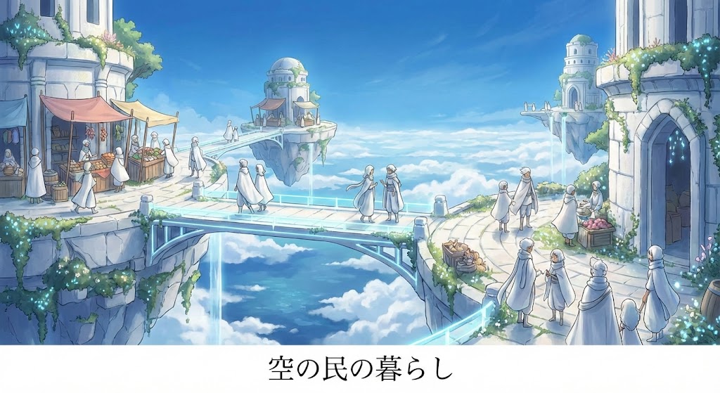 はじめに エルドリア王国の旅案内師、エリアナです。 ソラリアを旅していると、空の景色だけでなく、そこに暮らす「空の民」の生活そのものにも、いつも心を惹かれます。 光の橋を軽やかに渡る姿や、風を読む仕草、浮遊島の上で営まれる日々の暮らしは、地... -