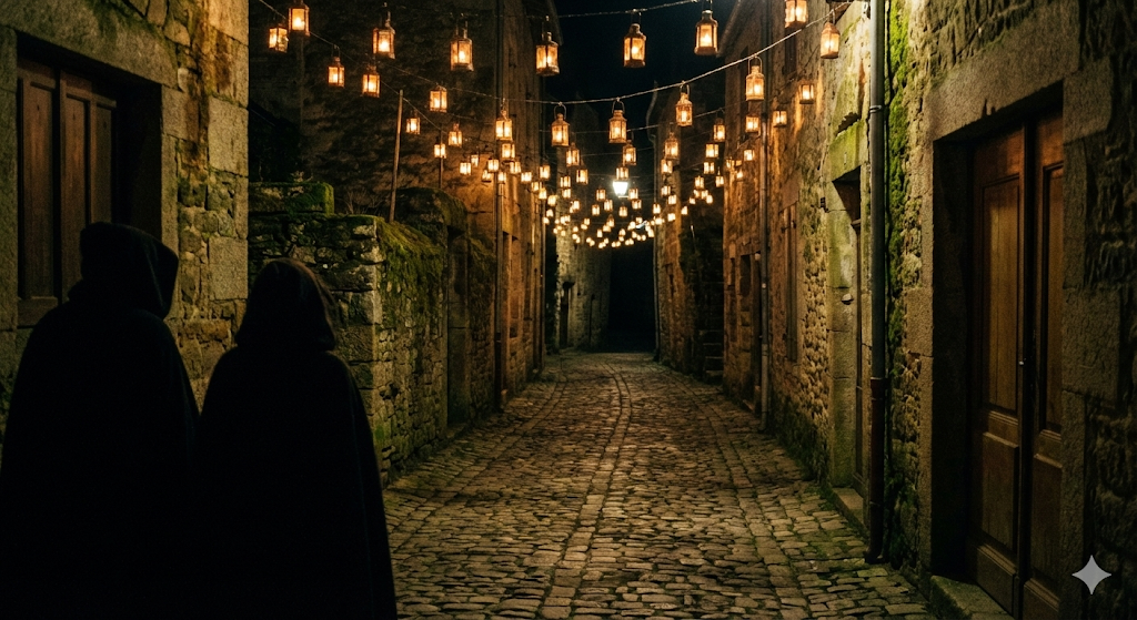 ポイント: ぽつぽつと灯る小さな明かりが、物語のワンシーンのような雰囲気を演出します。人物撮影にも最適です。