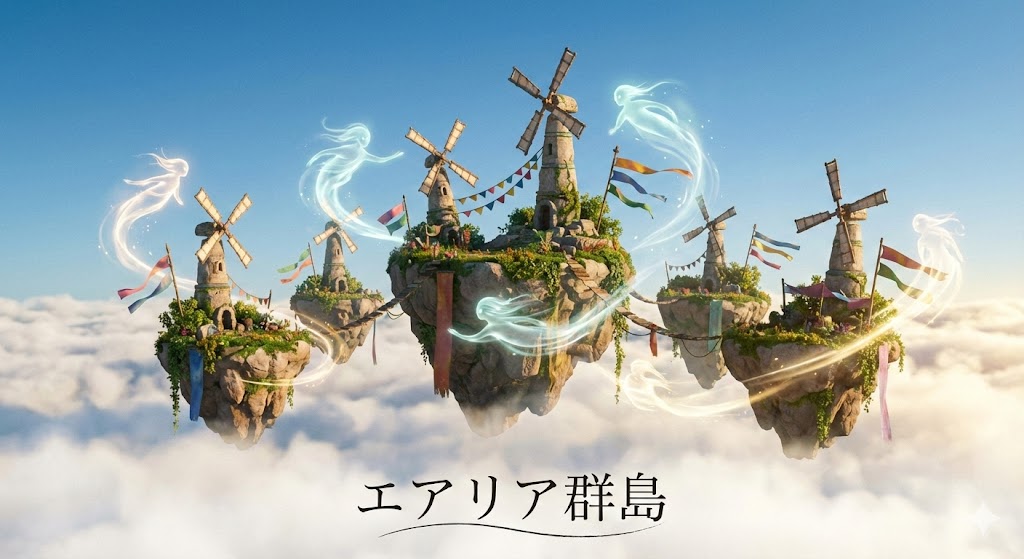 はじめに エルドリア王国の旅案内師、エリアナです。 にぎやかな中央島から少し離れて、風だけを頼りに歩きたくなるとき――私はよく「エアリア群島」を訪れます。 ソラリアの中でも、少し特別な場所として語られるのが「エアリア群島」です。中央島から少し... -